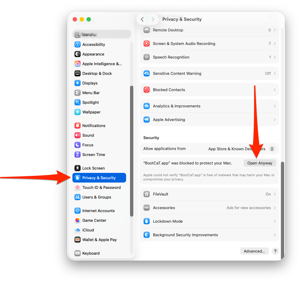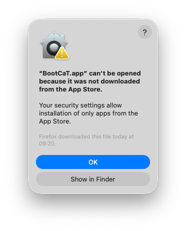 Since BootCaT isn't notarized, the workaround presented here is needed to and run the App.